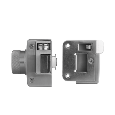• Cuenta con un cerrojo metálico, y un rodillo que posiciona el mecanismo al cerrar la puerta.